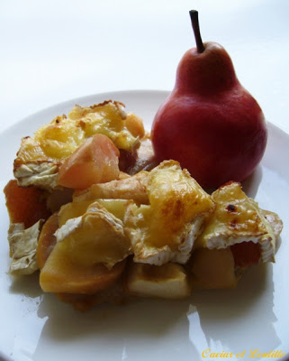 A Nők Lapjában múlt heti számában olvastam ezt a receptet. Pár hónapja nagy sikert aratott nálunk a bundázott-rántott változata, de hétköznap estére határozottan jobb ez a verzió. Az eredeti recept csak almát ír, de nem tudtam ellenállni a hétvégén a piacon gyönyörűen pirosló vilmoskörtéknek sem.