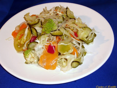 Minden alkalommal hálát rebegek annak, aki kitalálta a robotgépet. És persze magamnak is, amiért beszereztem egy ilyen csodát! 🙂 A megmosott zöldségeket hihetetlenül gyorsan felszeleteltem vele. Kaptam nálunk a piacon pagoda karfiolt és mivel annyira szépnek találom, de szinte semmilyen más formában nem tudom ezt megőrizni, így rózsáira szedve a csalamádém dísze lett. Természetesen normál karfiollal is tökéletes. Kisdinnyét viszont nem kaptam, így az idén kimaradt, de pár szem piros kápia paprika helyet kapott apró kockákra vágva. Csakis a színhatás kedvéért 🙂