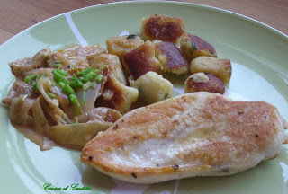 A maga nemében ez is fúziós konyha 🙂 Köretként Gordon Ramsay zöldfűszeres gnocchi-ját és Várvizi Péter által ihletett tejszínes, sült hagymát választottam az Ízbolygó és Vomberg Frigyes ötlete alapján készített fantasztikusan omlós és szaftos csirkemell mellé.