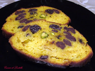A tojásokat habosra kevertem a cukorral, hozzáadtam az olvasztott vajat és a reszelt sütőtököt. Végül hozzászitáltam a sütőporral elkevert lisztet. Beleszórtam a pisztáciát, a mazsolát és a csokit. Tamásom legnagyobb megrökönyödésére ez utóbbiakat mérés nélkül, csak úgy szemre. Nagyjából 1-2 marék került bele mindenből.