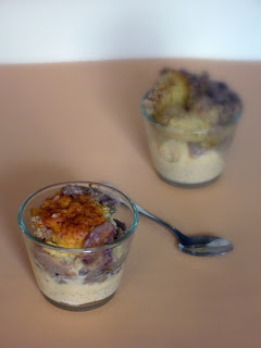 Az almákat meghámoztam és cikkekre vágtam, természetesen kiszedtem a magházait. A vajon fedő alatt megpárolom a cukorral, a vanília rúddal és a kikapart magjával, a lime héjával és levével. Mikor félig megpuhult az alma levettem a fedőt róla és hozzáadtam a cidert majd levettem a tűzről és hozzákevertem a keményítőt. Egy kivajazott mélyebb tálba tettem. A gesztenyemasszát simára kevertem a tejszínnel és a rummal és a tetejére simítottam.